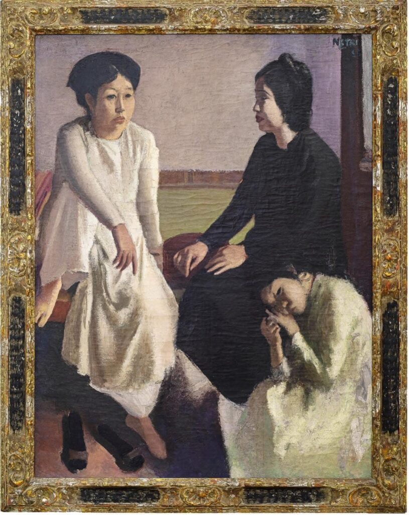 Chúng ta đều biết Danh hoạ Nguyễn Gia Trí được giới mộ điệu đặt tên là Vua Sơn Mài, nên những bức sơn dầu của ông rất hiếm hoi và giá trị đặc biệt. Bức tranh “Ba người phụ nữ” được sáng tác khi ông vẫn chưa tốt nghiệp Trường mỹ thuật Đông Dương.