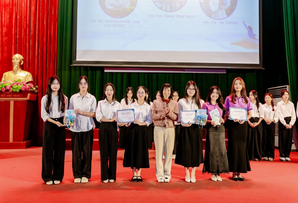 2. Đội thi “Haha True Milk” (giới thiệu cuốn “Những đứa con của cây cầu Long Biên”; thực hiện: nhóm các bạn Khoa Ngữ văn gồm: Trần Thu Hà – K50B Sư phạm Ngữ văn, Lê Đan Hạ – K50B Sư phạm Ngữ văn; Phạm Thị Xuân Mai – K50A Sư phạm Ngữ văn, Nguyễn Thị Phương Thanh – K50A Sư phạm Ngữ văn).